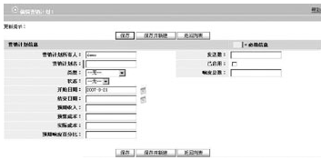 營(yíng)銷計(jì)劃管理功能可以讓用戶跟蹤每個(gè)營(yíng)銷計(jì)劃已生成的業(yè)務(wù)機(jī)會(huì)量。當(dāng)創(chuàng)建業(yè)務(wù)機(jī)會(huì)時(shí),用戶可以在營(yíng)銷計(jì)劃來(lái)源字段中填入相關(guān)信息,以表明該業(yè)務(wù)機(jī)會(huì)是由營(yíng)銷計(jì)劃生成的,從而檢驗(yàn)、評(píng)定每個(gè)營(yíng)銷計(jì)劃的執(zhí)行效率。