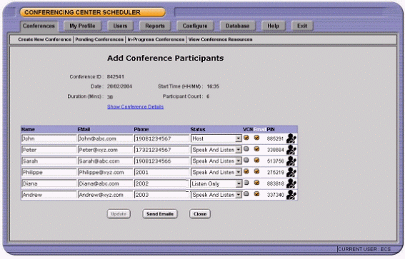 作為電話會議的補充,會議主席可以建立基于web的應用。通過這樣的web接口,會議主席和與會人員不僅看到與會人員的狀態(tài),還可以設置聽眾只聽,聽和說,可以看到web界面的權限。web