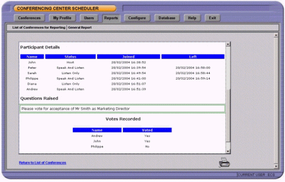 - 基于WEB的會議資源和投票結果報告。