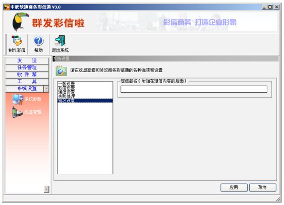(中聯(lián)軟通商務(wù)彩信通系統(tǒng)設(shè)置界面)