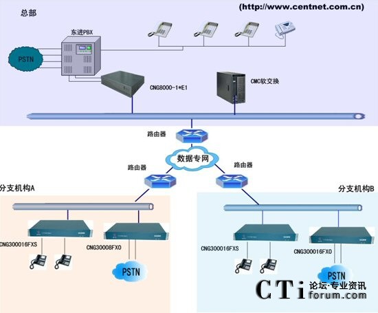 方案組網(wǎng)說明:通過呼叫中心服務(wù)器E1接口聯(lián)系數(shù)字中繼CNG8000-1*E1, 遠程座席接CNG3000FXS ,遠程PSTN接CNG3000FXO設(shè)備,上述設(shè)備統(tǒng)一注冊到CMC軟交換上。