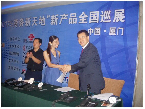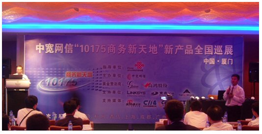 2007年6月27日,中寬網信”101756商務新天地”新產品全國巡展廈門站在廈門喜來登酒店勝利召開。會議的主旨是向中小企業(yè)及呼叫中心用戶推出個性化的通信增值服務方案,提高企業(yè)競爭力;同時為投資者提供投資小回報快的投資項目。此次會議得到了中國聯通的大力支持,廈門聯通數據部副總監(jiān)林長春先生表示中國聯通十分看好中國電信融合市場的巨大產業(yè)機會,有信心與中寬網信真誠合作,利用雙方各自平臺優(yōu)勢,深度合作,資源互補,共同參與激烈的電信市場競爭。