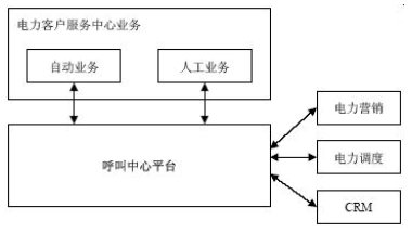 電力客戶服務(wù)中心整體結(jié)構(gòu)根據(jù)呼叫中心方案設(shè)計(jì),采用呼叫中心平臺(tái)系統(tǒng)為客服平臺(tái),在平臺(tái)上開(kāi)發(fā)電力自動(dòng)業(yè)務(wù)和人工業(yè)務(wù)系統(tǒng);并且利用呼叫中心系統(tǒng)平臺(tái)的互連互通能力跟其他電力相關(guān)軟件系統(tǒng)對(duì)接,如后臺(tái)電力營(yíng)銷子系統(tǒng),電力管理系統(tǒng),電力調(diào)度,電力網(wǎng)管,客戶關(guān)系管理子系統(tǒng)等等。