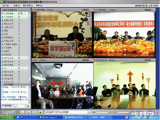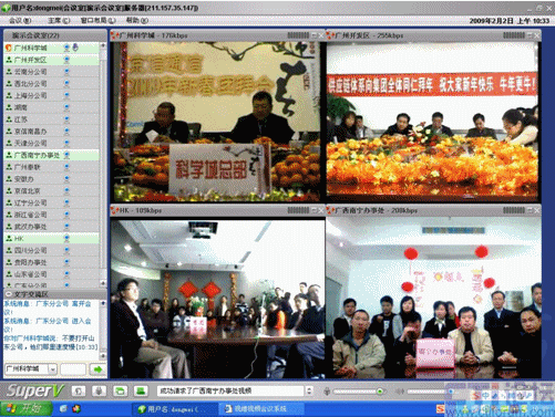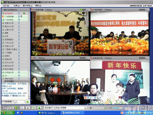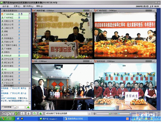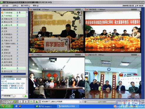 春節(jié)是中華民族的傳統(tǒng)的節(jié)日,尤其是跨國(guó)企業(yè)集團(tuán),身在海外的游子們,這一刻多么期待與在國(guó)內(nèi)的親人、朋友、以及同事網(wǎng)絡(luò)“面對(duì)面”的過春節(jié);因此,一些企業(yè)用視維視頻會(huì)議舉辦了別開生面的視頻拜年會(huì)。其中京信通信公司視頻年會(huì)尤為精彩,廣州科學(xué)城的主會(huì)場(chǎng)、廣州開發(fā)區(qū)、香港、北京、上海、西北分公司、武漢等20多個(gè)分公司通過視維視頻會(huì)議互拜大年,通過網(wǎng)絡(luò)視頻,遠(yuǎn)隔千里一樣可以“面對(duì)面”的送上新春祝福。如下圖: