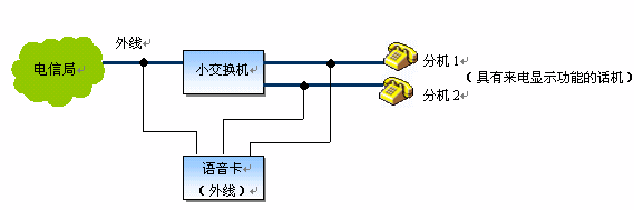 三匯公司所有型號的電話語音卡,利用其強大的DSP處理能力,無論是模擬卡還是數字中繼卡都在每一個話路實現了FSK(頻移鍵控調制)信號的接收和發(fā)送功能。利用語音卡作為中心端設備,可以通過普通電話線路,E1線或是專門布設的雙絞線電纜與終端設備進行半雙工的中等速率的數據通信。利用FSK通信,相對于DTMF來說具有速度快的優(yōu)勢,DTMF通訊最多只能達到40-60bps,FSK則可以達到1200-2400bps。相對于標準的33.6K點對點Modem來說,則具有握手速度快,終端成本低的優(yōu)勢。終端設備可以采用CMX868等低成本的調制解調器芯片來實現。這方面的應用非常廣泛,以下舉例說明: