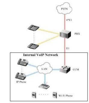 iBG3026,最后在PBX和Ubigate iBG3026之間再開通4條E1中繼,同時(shí),Ubigate iBG3026通過自帶的GE接口接入酒店的辦公局域網(wǎng),這樣即使出現(xiàn)客房人員使用網(wǎng)絡(luò)不規(guī)范的情況發(fā)生,也不會(huì)影響語(yǔ)音服務(wù)的質(zhì)量。