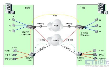 A公司總部設(shè)在深圳,在廣州有分公司。深圳總部目前已有10M光纖到樓作為總出口帶寬,已安裝1臺(tái)支持VPN功能的Linksys路由器;語(yǔ)音方面,已申請(qǐng)了16條電話線,并安裝1臺(tái)國(guó)威128門PBX;廣州也引入了3M光纖作為出口帶寬,和6條電話線作為PSTN外線,已安裝1臺(tái)支持VPN功能的Linksys路由器和1臺(tái)國(guó)威64門PBX。深圳、廣州兩地公司已建立了VPN隧道,以提供有安全保障的數(shù)據(jù)網(wǎng)絡(luò)平臺(tái)。