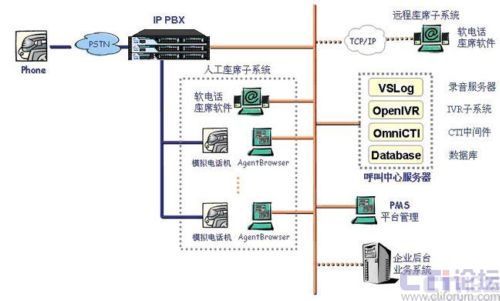 - 遠(yuǎn)程坐席:功能同本地坐席一樣,運(yùn)行AgentBrowser模塊,通過數(shù)據(jù)專網(wǎng)同呼叫中心系統(tǒng)通信。
