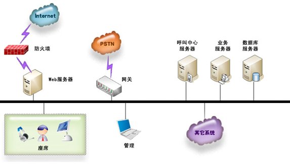 用戶層是呼叫系統(tǒng)與系統(tǒng)使用者之間的聯(lián)系層。工作人員可以通過瀏覽器進(jìn)入系統(tǒng)的業(yè)務(wù)部分進(jìn)行工作,處理相應(yīng)事務(wù);用戶可以通過電話打入系統(tǒng)的呼叫中心部分,獲得自動(dòng)或人工服務(wù),也可以通過Email、短信、傳真等方式與系統(tǒng)聯(lián)系;同時(shí),系統(tǒng)可以進(jìn)行電話外撥,聯(lián)系相關(guān)部門或進(jìn)行主動(dòng)服務(wù)。