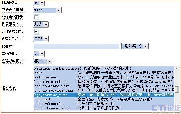 - 自動語音應(yīng)答(IVR):實(shí)現(xiàn)全天候自助式服務(wù)。通過系統(tǒng)的交互式應(yīng)答服務(wù),來電者可以很容易的通過電話機(jī)鍵盤輸入他們的選擇,從而得到24小時的服務(wù)。用戶根據(jù)自己的業(yè)務(wù)需求自主錄制多層次IVR語音自動應(yīng)答流程,并在更換之后能夠和后臺的程序相結(jié)合(如增加一個流程、刪除一個流程、跳過某個流程等)。根據(jù)需要,也可以將來電者轉(zhuǎn)移到不同的服務(wù)組甚至不同的單位或者部門。