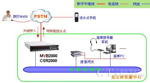 - 老用戶呼入時則自動轉(zhuǎn)接到相應(yīng)送水點或者聽語音提示后二次撥號轉(zhuǎn)接至送水點并顯示主叫號碼;