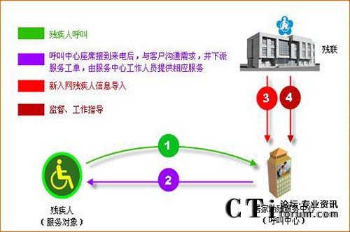 居家助殘呼叫平臺包含:殘疾人、殘聯(lián)、居家助殘服務中心、三個業(yè)務角色,殘聯(lián)、居家助殘服務中心之間建立高效聯(lián)動機制。