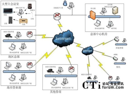 隨著全球經(jīng)濟一體化和網(wǎng)絡(luò)經(jīng)濟時代的到來,信息技術(shù)對證券業(yè)的影響越來越明顯,信息化水平的高低已經(jīng)成為證券經(jīng)營機構(gòu)競爭力的重要標志。隨著國內(nèi)數(shù)據(jù)網(wǎng)絡(luò)的不斷完善,各證券公司在保證交易業(yè)務(wù)的前提下,大部分已經(jīng)完成了廣域網(wǎng)模式下的ISDN、DDN等多種線路組成的數(shù)據(jù)網(wǎng)絡(luò),實現(xiàn)了相互間的信息交換。但是,單純的后臺數(shù)據(jù)交換已經(jīng)不能滿足實際的應用需求,而另一方面,傳統(tǒng)的溝通交流方式也隨著信息化程度的提高,也存在著使用成本偏高,信息傳遞速度太慢等問題。應運而生的視頻會議系統(tǒng)正是基于現(xiàn)有的數(shù)據(jù)通信網(wǎng)絡(luò),解決了數(shù)據(jù)傳遞和信息交流無法同步實現(xiàn)的問題,為企業(yè)降低了溝通交流的成本,節(jié)省了大量的時間,提高了協(xié)同工作的效率,同時企業(yè)形象得到了提升。