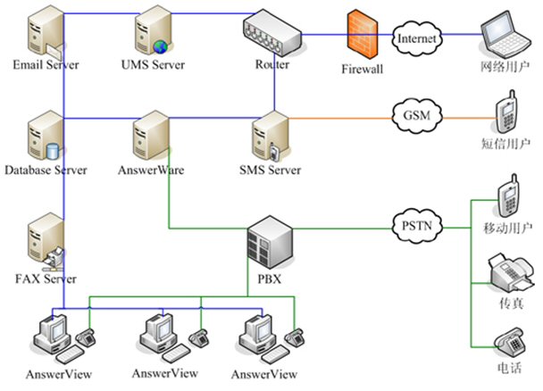 整合多種功能:擁有一套AnswerWare就等于同時擁有了語音服務(wù)器、傳真服務(wù)器、短信服務(wù)器和郵件服務(wù)器。