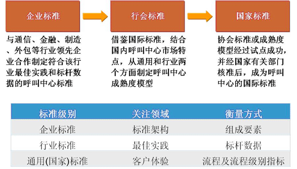 結(jié)合了以上調(diào)研考察的豐碩成果以及共識,呼叫中心標(biāo)準(zhǔn)指導(dǎo)委員會和客戶世界研究院(CCMWorld Group)負(fù)責(zé)起草,聯(lián)合各行業(yè)具有代表性的呼叫中心運營機(jī)構(gòu)(包括外包呼叫中心)和專業(yè)呼叫中心承載園區(qū),正式發(fā)起中國呼叫中心領(lǐng)域國家級行業(yè)性推薦標(biāo)準(zhǔn)和“立足中國、定位亞太、接軌世界”的國際標(biāo)準(zhǔn),并將其命名為“呼叫中心能力成熟度模型CC-CMM”