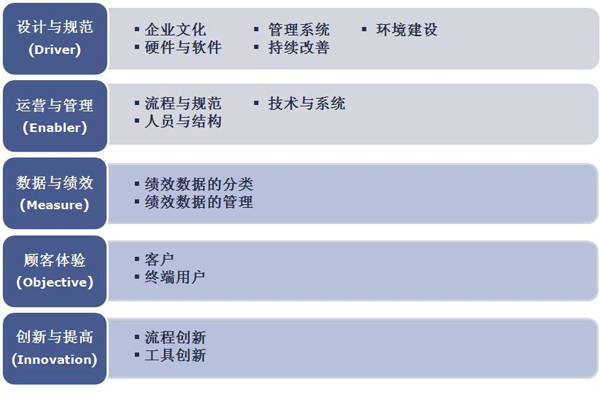 呼叫中心能力成熟度認(rèn)證涉及設(shè)計與規(guī)范、運營與管理、數(shù)據(jù)與績效、顧客體驗、創(chuàng)新與提高5大類,14項評審指標(biāo)以及若干個值得關(guān)注的管理項目。是一套完整的“客戶為中心”的績效管理工具。