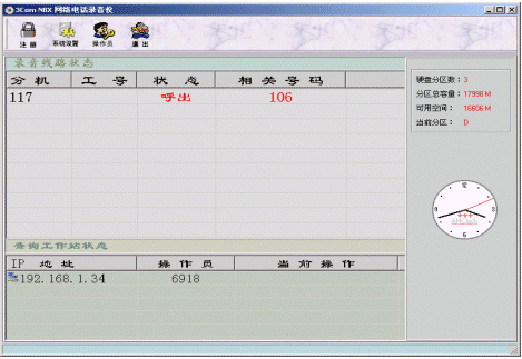 保存所有坐席的錄音文件,顯示當(dāng)前所有坐席的狀態(tài)(工號(hào)、分機(jī)號(hào)、坐席狀態(tài)等)以及所有操作員的狀態(tài),并在磁盤(pán)空間將滿時(shí)實(shí)時(shí)刪除最陳舊的錄音文件并更新數(shù)據(jù)庫(kù)保證最新的錄音文件能及時(shí)上傳到服務(wù)器以及整個(gè)錄音系統(tǒng)持續(xù)、長(zhǎng)期、穩(wěn)定的運(yùn)行。