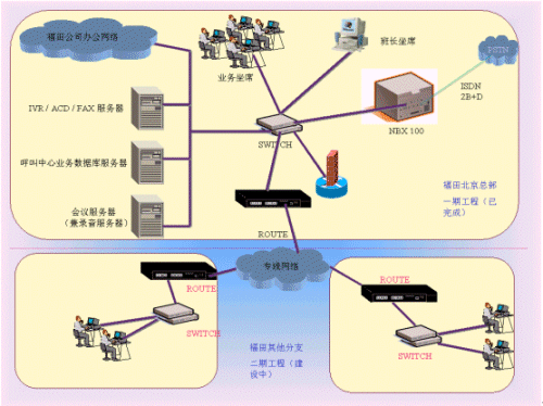 2. 隨著福田企業(yè)的發(fā)展,福田面臨的用戶群也日趨龐大。為了更好地為客戶服務(wù),同時也為了提高企業(yè)的整體形象,福田公司準備建立客戶服務(wù)呼叫中心。首先在北京總部設(shè)立集中式的人工坐席,待各地分公司和總部之間的數(shù)據(jù)網(wǎng)絡(luò)建成后還要在各地分公司建立分布式的人工坐席。