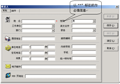 在地址簿中按鼠標(biāo)右鍵,在彈出的菜單中選擇“新鍵地址簿記錄”選項(xiàng),就會彈出新建聯(lián)系人對話框,在這里添入相應(yīng)的內(nèi)容,您的一個(gè)新用戶通訊錄就建立完畢了。