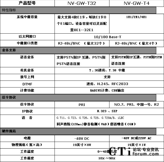 NV-GW-T集中繼網(wǎng)關(guān)和信令網(wǎng)關(guān)功能與一體,該網(wǎng)關(guān)位于公用交換電話網(wǎng)(PSTN)與IP網(wǎng)的接口處,實(shí)現(xiàn)中國一號、ISDN PRI信令與H.323、SIP信令的轉(zhuǎn)換,同時(shí)完成公用電話交換網(wǎng)的承載通道與IP網(wǎng)之間的媒體流轉(zhuǎn)換。中繼網(wǎng)關(guān)在電話網(wǎng)側(cè)支持采用ISDN