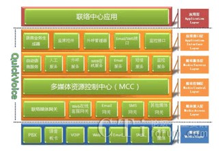 - 應(yīng)用接口層,上層應(yīng)用必須通過(guò)應(yīng)用接口調(diào)用各種媒體服務(wù),確保了應(yīng)用對(duì)下層平臺(tái)的合法調(diào)用,從而保證整個(gè)平臺(tái)的穩(wěn)定性。QuickVoice提供了豐富的簡(jiǎn)單易用的應(yīng)用接口,使用戶(hù)可以最大限度發(fā)揮平臺(tái)功能,構(gòu)筑任意復(fù)雜的呼叫中心應(yīng)用