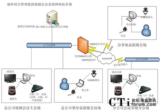 瑞和項(xiàng)目管理集團(tuán)網(wǎng)絡(luò)基礎(chǔ)建設(shè)以后,各個(gè)分支機(jī)構(gòu)通過ADSL接入到互聯(lián)網(wǎng),一般每個(gè)分支單位大約5人左右,負(fù)責(zé)1個(gè)省的業(yè)務(wù)。在現(xiàn)有的網(wǎng)絡(luò)基礎(chǔ)上構(gòu)建了XView迅流視頻系統(tǒng),來滿足各地之間的溝通需求,系統(tǒng)的大范圍使用大大的提高辦公效率,節(jié)省時(shí)間及會(huì)議成本。隨著各部門遠(yuǎn)程通信需求日益增多,充分發(fā)揮現(xiàn)有網(wǎng)絡(luò)優(yōu)勢(shì),根據(jù)瑞和項(xiàng)目管理集團(tuán)實(shí)際規(guī)模,對(duì)XView迅流視頻會(huì)議系統(tǒng)進(jìn)行擴(kuò)容到全國50個(gè)重點(diǎn)分支,改造以后XView迅流視頻會(huì)議系統(tǒng)作為公司主要通訊手段。實(shí)現(xiàn)各個(gè)分公司、辦事處充分應(yīng)用網(wǎng)絡(luò)視頻會(huì)議系統(tǒng)進(jìn)行音頻、視頻和數(shù)據(jù)的多方溝通,提高辦公效率。