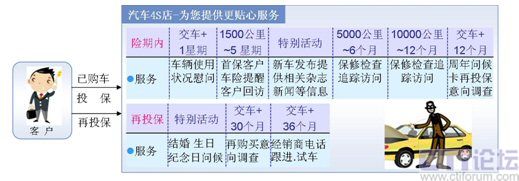 根據(jù)詳細(xì)的客戶或交易信息(如生日、性別、愛好、購車記錄、投保記錄等)主動(dòng)與客戶通過電話、短信等方式,進(jìn)行客戶回訪、投保到期再保提醒、生日祝福、節(jié)日問候、再保后的關(guān)懷等服務(wù),與客戶建立良好的長期關(guān)系。