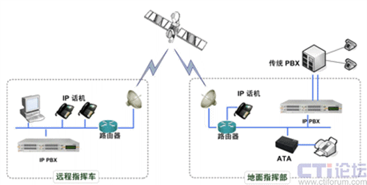 在有關部隊的應用案例中,有兩方面比較常見,應用也比較廣泛。首先是借助衛(wèi)星的遠程指揮通訊,我們?yōu)榈孛鏅C關與遠程指揮車之間架設起溝通的橋梁,除了電話、傳真等基本業(yè)務,還通過IP-PBX系統(tǒng)提供了多方會議、語音留言、熱線電話等擴展業(yè)務,在即使是雙星四跳的高延時環(huán)境下建立起穩(wěn)定的語音通信,保障了部隊指揮的有效下達。