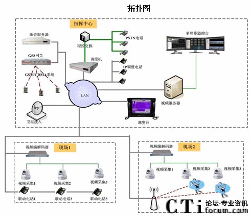 該系統(tǒng)由調(diào)度機、調(diào)度臺、視頻服務(wù)器、視頻監(jiān)控臺、調(diào)度終端、音視頻一體的終端、音頻終端、綁定視頻終端等組成。