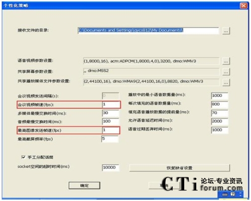 在會(huì)議進(jìn)行之前,主持人要根據(jù)網(wǎng)絡(luò)環(huán)境和電腦配置來設(shè)置會(huì)議幀速和圖像最高發(fā)送幀速?gòu)亩鴮?shí)現(xiàn)最佳的視頻效果。會(huì)議幀速和圖像最高發(fā)送幀速設(shè)置的越大,圖像就越連續(xù),但同時(shí)對(duì)電腦配置要求也就越高。如果服務(wù)器和主持人電腦配置可以達(dá)到雙核,2G以上的內(nèi)存,就可以把會(huì)議幀速和圖像最高發(fā)送幀速設(shè)置到5fps以上,此時(shí)聲音和口型就可以對(duì)上。會(huì)議幀速對(duì)所有的參加會(huì)議的都生效,但如果會(huì)議幀速設(shè)置的過高,有的參會(huì)人員的幀速達(dá)不到會(huì)議幀速,這時(shí)可以把自身的圖像最高發(fā)送幀速設(shè)置的低一些,因?yàn)楫?dāng)會(huì)議幀速高于自身設(shè)置的圖像最高發(fā)送幀速時(shí),以自身設(shè)置的為主,當(dāng)會(huì)議幀速低于自身設(shè)置的最高圖像發(fā)送幀速時(shí),以會(huì)議幀速為主。在各種條件都不是很好的情況下,建議會(huì)議幀速設(shè)置為1,這樣首先可以確保視頻會(huì)議可以正常進(jìn)行,然后再一點(diǎn)點(diǎn)的增加會(huì)議幀速,最終達(dá)到最佳的效果。