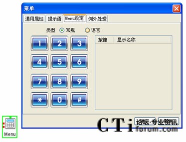 2、菜單(Menu)組件:是IVR的語音菜單組件,不同的語音菜單對應(yīng)支持不同的業(yè)務(wù)功能。