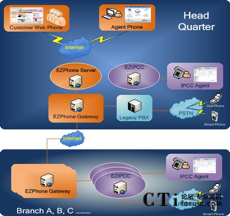 ,CRM和FAX等。大量的節(jié)省了呼叫中心建置的成本。而對于企業(yè)端,現(xiàn)有的交換機(jī)或網(wǎng)絡(luò)設(shè)備可以繼續(xù)使用,EZiPCC可以無縫嵌入到企業(yè)環(huán)境中去,達(dá)到相輔相成的效果。語音與數(shù)據(jù)共享網(wǎng)絡(luò)也降低了企業(yè)網(wǎng)絡(luò)建設(shè)的成本,不同地點的分公司也可藉由EZiPCC系統(tǒng)的布署,達(dá)到降低話務(wù)成本和呼叫中心共享的目