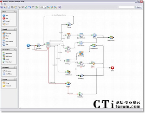 透過此組件, 使用者可以定制符合企業(yè)需求的 IVR 語音菜單, 設(shè)計IVR流程,其中包含基本組件、路由組件、目的組件、進(jìn)階組件;提供組織流程、交互語音、以及設(shè)定路由等相關(guān)功能.