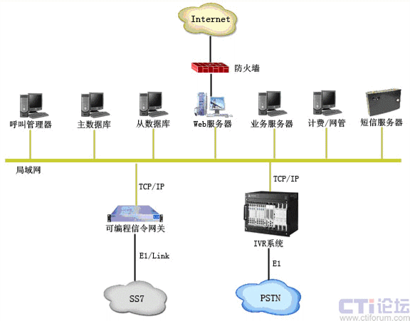 可編程信令網(wǎng)關(guān): 通過E1接入SS7信令網(wǎng),專門負責七號信令的處理;