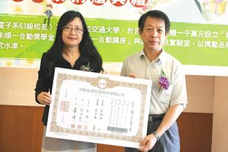 眷村子弟出身的朱順一,交大電子工程系畢業(yè),十三年前,就捐贈(zèng)一千萬元給交大,成立“網(wǎng)絡(luò)通訊技術(shù)發(fā)展基金”,培育網(wǎng)通人才,另設(shè)立獎(jiǎng)學(xué)金,濟(jì)助清、交大學(xué)生和竹苗地區(qū)高中清寒學(xué)生。