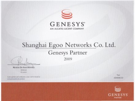 上海易谷與Genesys公司雙方在2009年達(dá)成大中華區(qū)長期合作伙伴關(guān)系,開展廣泛、深入的合作。上海易谷將憑借其深厚的技術(shù)背景、優(yōu)質(zhì)的服務(wù)能力,積極推動世界第一的CTI及SIP新一代呼叫中心基礎(chǔ)平臺。為配合產(chǎn)品多樣化、專業(yè)服務(wù)的發(fā)展戰(zhàn)略,與 Genesys公司達(dá)成合作意向。