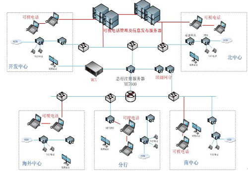 與原有的系統(tǒng)兼容,保持原有的撥號規(guī)則,會議系統(tǒng)等,盡量少的改變原有系統(tǒng),實現(xiàn)總行與四大中心以及各個分行的可視化通信,并實現(xiàn)可視化的通訊錄、會議管理、消息通知等一系列增值業(yè)務功能。