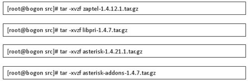 編譯zaptel ,libpri,asterisk和asterisk-addons ,具體操作如下: