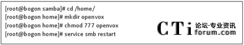 在/etc/samba/home/目錄下創(chuàng)建openvox這個(gè)目錄,并設(shè)置權(quán)限,最后重啟smb服務(wù),具體命令如下: