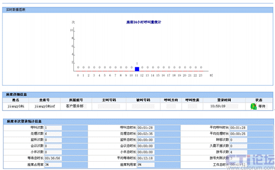 客戶撥打企業(yè)對外聯(lián)系號碼4007072008,在聽到語音提示“歡迎致電。。。。。。,技術支持按3。。。。。。”的時候,既可以按3,將電話分配到項目部的最適合這個工作的人的手機上來完成項目支持工作,也可以直接撥8123將電話指定分配到小河的手機上,讓工程師小河來完成項目支持工作。這樣一來,不管公司的人員在哪里,客戶只要撥打公司的總機號碼,就可以找到人員為其提供服務,同時,所有的通話,都在系統(tǒng)的管理和控制之內。下圖是對應的呼叫監(jiān)控的圖表,可以實時看到員工的工作狀態(tài):