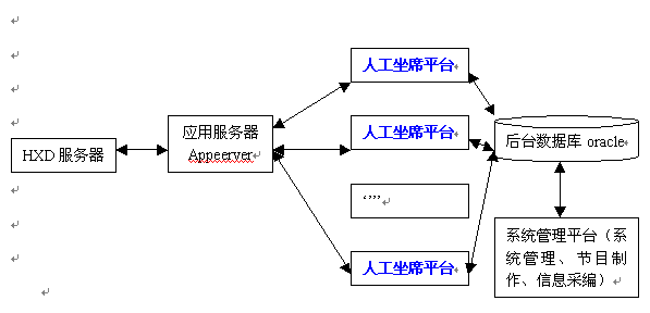 1) 數(shù)據(jù)庫系統(tǒng): 存放各類待查信息數(shù)據(jù)、話務(wù)統(tǒng)計數(shù)據(jù)、話務(wù)員操作明細(xì)數(shù)據(jù)等;