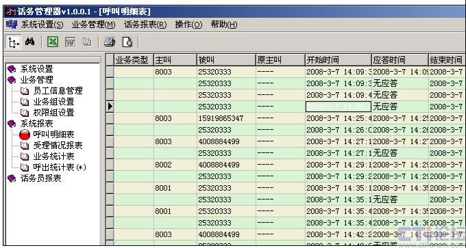 系統(tǒng)提供通話數(shù)據(jù)信息及統(tǒng)計,包括: 主被叫號碼 通話時長 呼出時長 等待時長 呼入呼出次數(shù) 話務員工作日報 |