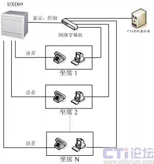 HXD09交換機(jī)的CTI 控制服務(wù)器,通過(guò)客戶端的DDE連接,將來(lái)電顯示號(hào)碼傳送到坐席的OPENVIEW系統(tǒng)。CTI