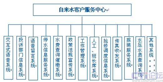 服務(wù)中心對外面向用戶服務(wù),對內(nèi)與整個(gè)自來水公司相聯(lián)系,將管理、監(jiān)控、考核、服務(wù)結(jié)為一體,它還可以把從用戶那里所獲得的各種信息、數(shù)據(jù)全部儲(chǔ)存在龐大的數(shù)據(jù)庫中,并能形成各類分析報(bào)表,供領(lǐng)導(dǎo)做分析和決策之用。