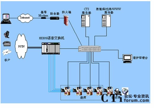 提供中國(guó)一號(hào)、七號(hào)信令、模擬、T1、IP等多種信令接入方式,具有呼入、呼出功能,負(fù)責(zé)向用戶(hù)播放服務(wù)用語(yǔ)、語(yǔ)音通知、呼叫引導(dǎo)用語(yǔ)、合成語(yǔ)音等,并具有錄音、監(jiān)聽(tīng)、發(fā)送傳真、接收傳真等功能,處理接入電話與人工坐席的連接、來(lái)話轉(zhuǎn)移、保留、坐席呼出等功能,用戶(hù)與人工坐席的通話過(guò)程可實(shí)現(xiàn)全程錄音。在市場(chǎng)眾多品牌的交換機(jī)中,本系統(tǒng)選用的HXD09語(yǔ)音交換機(jī)具有先進(jìn)的技術(shù)特點(diǎn)、極高的性?xún)r(jià)比,滿足了在本系統(tǒng)構(gòu)建的需求。其主要優(yōu)點(diǎn)是: