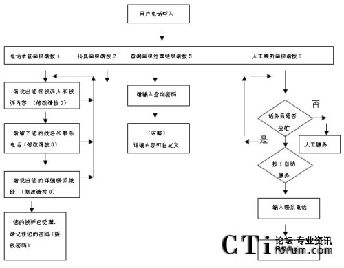 投訴人通過電話撥號,進(jìn)入熱線系統(tǒng),在完成雙向交流后,系統(tǒng)自動(dòng)生成隨機(jī)專用密碼,告知投訴人。通過該密碼,投訴人可以隨時(shí)通過電話查詢受理部門對其投訴的受理反饋情況,受理職能部門可將受理反饋情況通過錄音及時(shí)提供給投訴人。