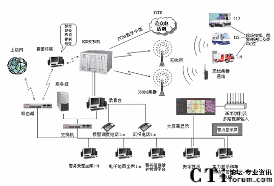 根據(jù)公安部“金盾工程”相關(guān)規(guī)定,以HXD09-II智能語音調(diào)度系統(tǒng)為核心的應(yīng)急聯(lián)動通信系統(tǒng),將公安110、消防119、交警122報警服務(wù)臺整合成統(tǒng)一的多功能綜合指揮調(diào)度平臺,加強(qiáng)了不同警種及聯(lián)動單位之間的配合協(xié)作,實現(xiàn)特殊、突發(fā)事件應(yīng)急反應(yīng)快速、高效,信息處理及時、全面。