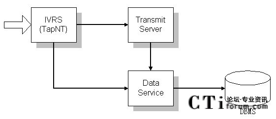 后臺(tái)程序使用Data Service 作為數(shù)據(jù)庫(kù)中間插件,TapNt(IVR)負(fù)責(zé)運(yùn)行流程。TapNt(IVR)查詢數(shù)據(jù)要通過(guò)Data Service來(lái)進(jìn)行。這項(xiàng)設(shè)置的目的在于使數(shù)據(jù)插件得到充分利用。當(dāng)話務(wù)量增多時(shí),可以多開(kāi)幾個(gè)Data