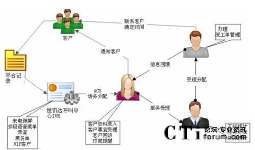 呼叫中心的建設(shè),并不單純是一個(gè)電話交互的窗口,應(yīng)該能提供功能完善的全面服務(wù)內(nèi)容,呼叫中心系統(tǒng)流程: