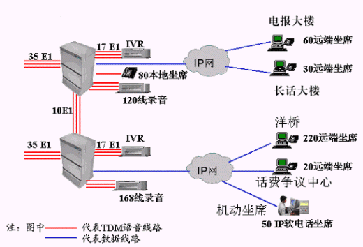 ·2個(gè)交換機(jī)形成分布式呼叫中心結(jié)構(gòu)